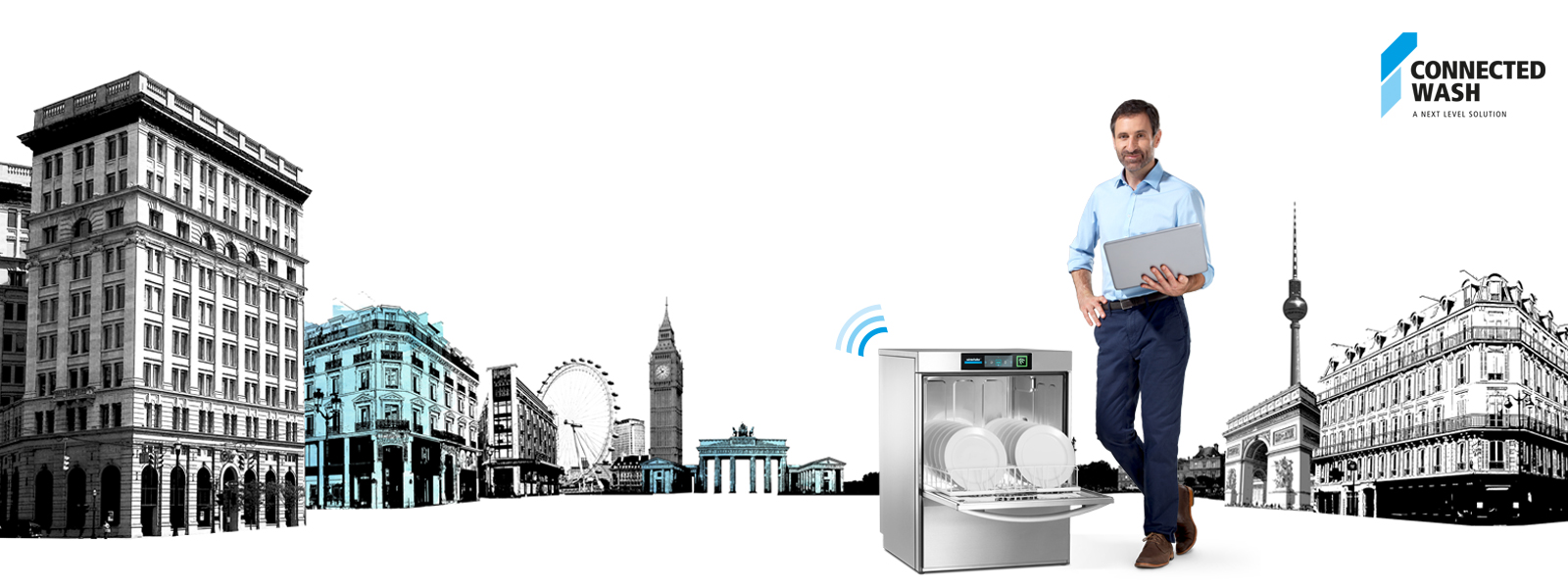 Making the washing process transparent. Identifying the areas where there is potential for optimisation. Improving workflows. CONNECTED WASH makes possible what was previously impossible: by connecting the warewasher to a network, the key operating data can be analysed and evaluated – to optimise the washing process in a targeted way. For perfect wash results in combination with maximum safety and optimal efficiency. CONNECTED WASH is available as an option for warewashers in the UC, PT and UF series.