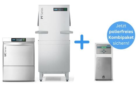 Für brillante Spülergebnisse und effektiven Maschinenschutz: die passende Wasseraufbereitung. In die Maschine integriert oder als externes Gerät.
