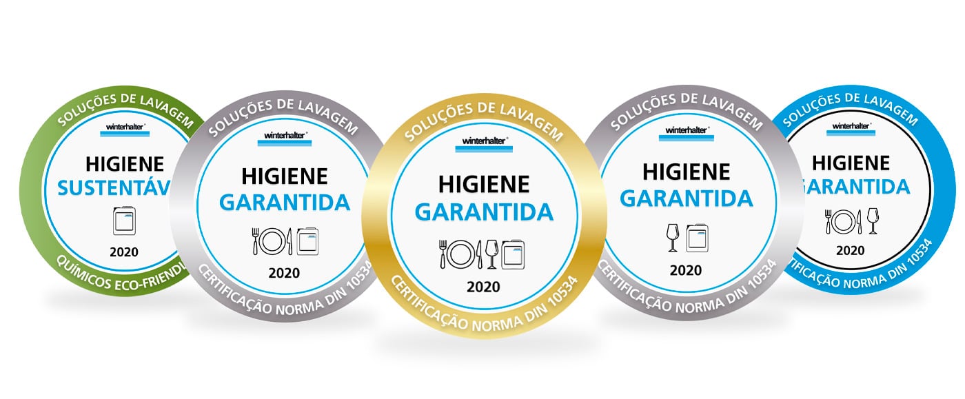 O Selo de Higiene Ouro da Winterhalter indica que o estabelecimento utiliza o sistema completo de lavagem de vidros e louças, atendendo ao mais alto padrão de higiene em lavagem industrial, de acordo com a DIN 10534. Isso inclui o equipamento de lavagem Winterhalter em conjunto com produtos químicos Winterhalter formulados especificamente para garantir a higienização adequada do material a ser lavado. O sistema Winterhalter garante lavagem em temperaturas, tempos de contato e produtos químicos adequados para higienizar louças e copos com uma redução no número de germes de 99,999%, de acordo com o estudo realizado pelo Instituto MIH (Hergatz, Alemanha).