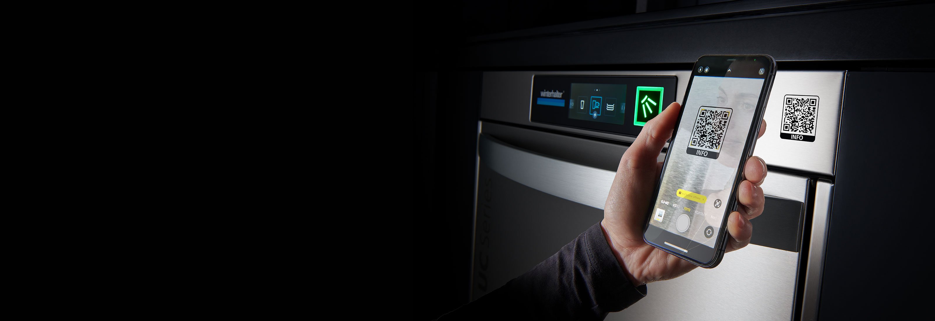 Einfach und schnell: Über den QR-Code auf der Winterhalter Spülmaschine erhalten Sie direkten Zugang zu Ihrem digitalen Servicebereich.