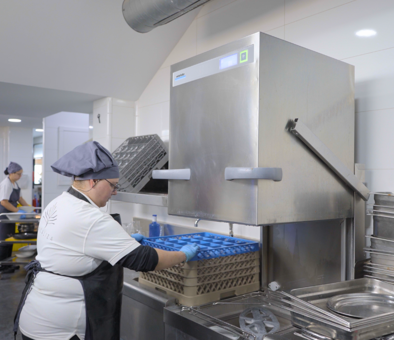 En restaurante La Caliza, el objetivo era claro: eliminar el repasado manual, reducir las bajas por rotura de cristal y optimizar el consumo de agua y energía sin comprometer la seguridad sanitaria. Necesitaban una solución compacta que integrara tratamiento de agua y químicos específicos para que cada pieza saliera impecable y seca en menos de 2 minutos.