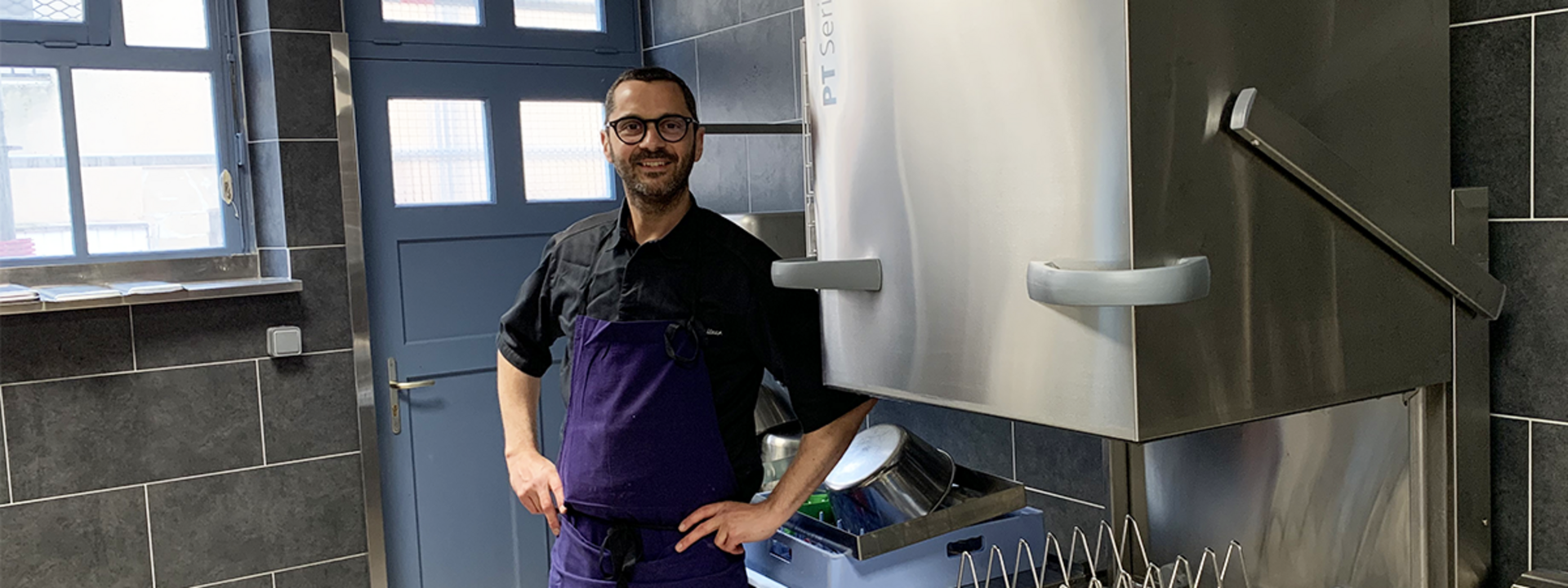 Je travaille depuis plusieurs années avec Winterhalter. A ce jour, mon restaurant est équipé de deux lave-vaisselle frontaux (UC S et UC XL) et je viens de recevoir un lave-vaisselle à capot PT.