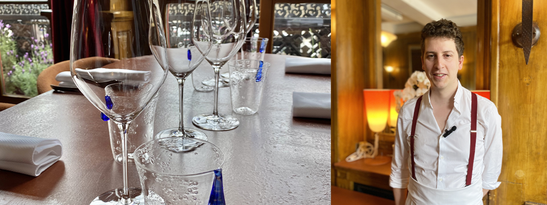 Travaillant à l’Etage Restaurant depuis 11 ans, je m’occupe de la salle et de la cuisine. La grosse problématique à l’époque, avant que je connaisse Winterhalter, c’était le lavage des verres. Je n’avais pas de lave-vaisselle avec osmoseur donc tous les verres et toute la vaisselle devaient être renettoyés après au chiffon. De ce fait, avoir une machine Winterhalter a permis un gain de temps. Nous avons des verres assez spécifiques, par exemple, les verres à eau ont été crée à Murano donc ils sont très légers et très fragiles et le lave-verre les lavent très bien il n’y a pas de traces. Nous avons également des verres à vins avec une verrerie très fragiles. Ici nous utilisons la machine Winterhalter à 100%. Nous lavons les assiettes, les ustensiles et les verres. Avant de servir nos clients, nous lavons les assiettes afin qu’elles soient propres et préchauffées.