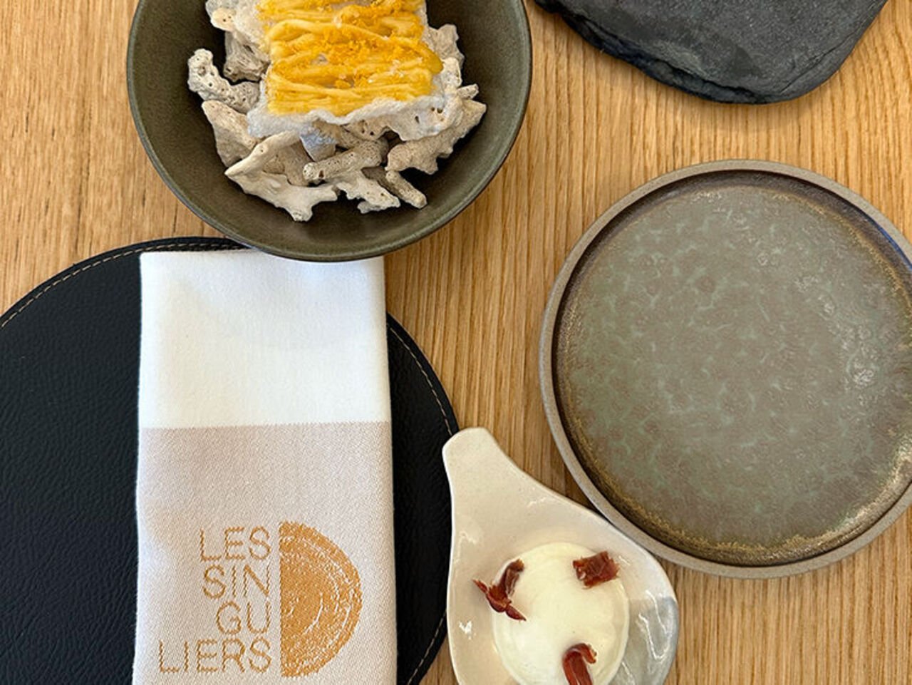 Le nom du restaurant Les Singuliers, c'est aussi pour valoriser l'écosystème autour de nous. Que ce soit le vigneron, le producteur, l'éleveur ou le maraîcher, toutes ces personnes sont singulières pour nous. Le restaurant propose une cuisine gastronomique avec des produits du terroir, mais complètement moderne, à ma façon.