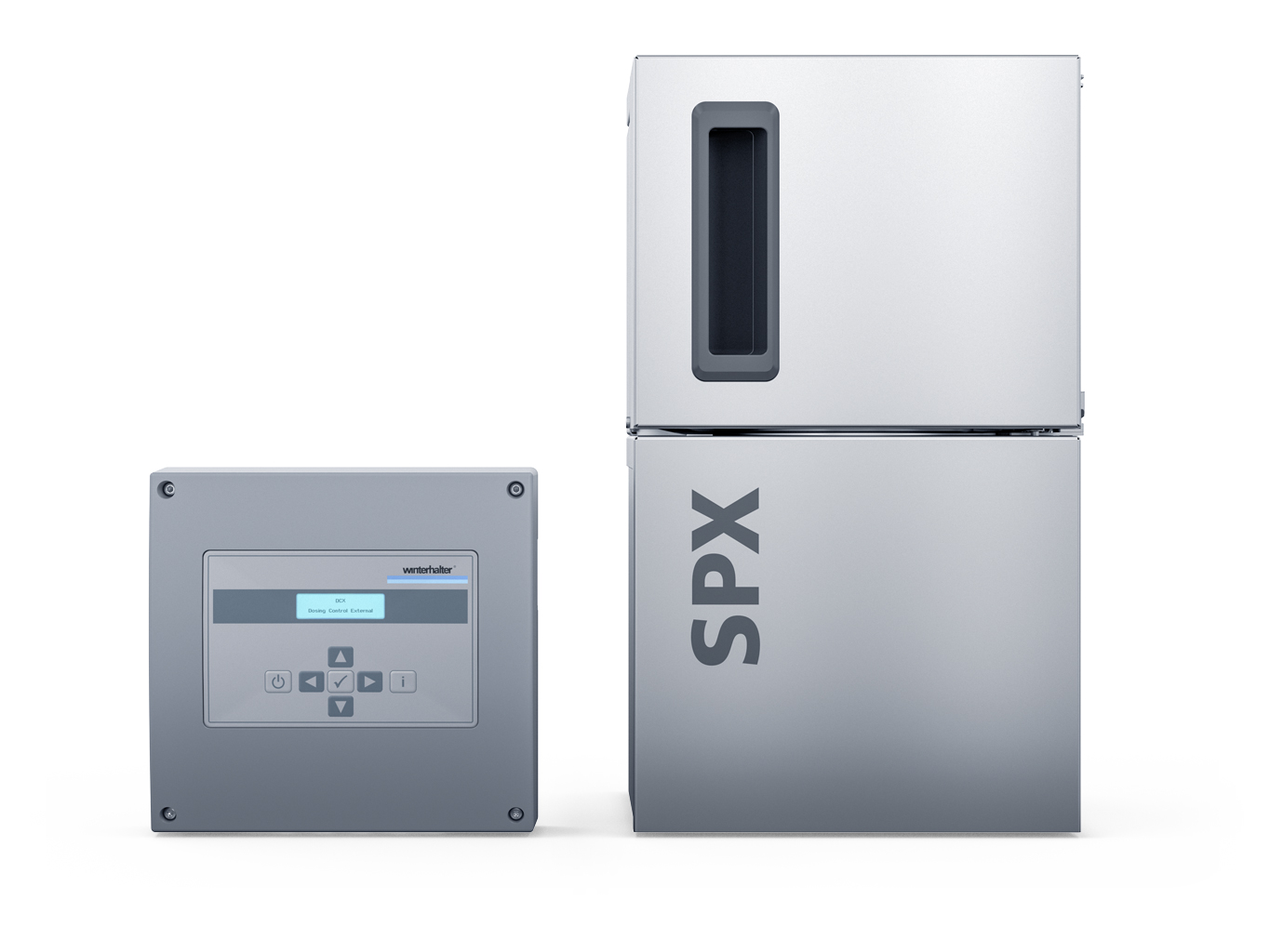 L'unità di dosaggio solidi esterna SPX (Solid Pump External) è disponibile come opzione e, in combinazione con l'unità di controllo del dosaggio esterna DCX, consente l'utilizzo di detersivi in polvere che, molto concentrati, hanno una resa di circa due terzi maggiore rispetto a un detersivo liquido. Sono comodi, ergonomici e sicuri, poiché le cartucce di detersivo si sostituiscono senza contatto con i prodotti chimici. Ulteriori vantaggi di questo sistema di dosaggio sono il montaggio diretto sulla macchina, lo stoccaggio salvaspazio delle cartucce di ricambio e il ridotto volume di rifiuti.