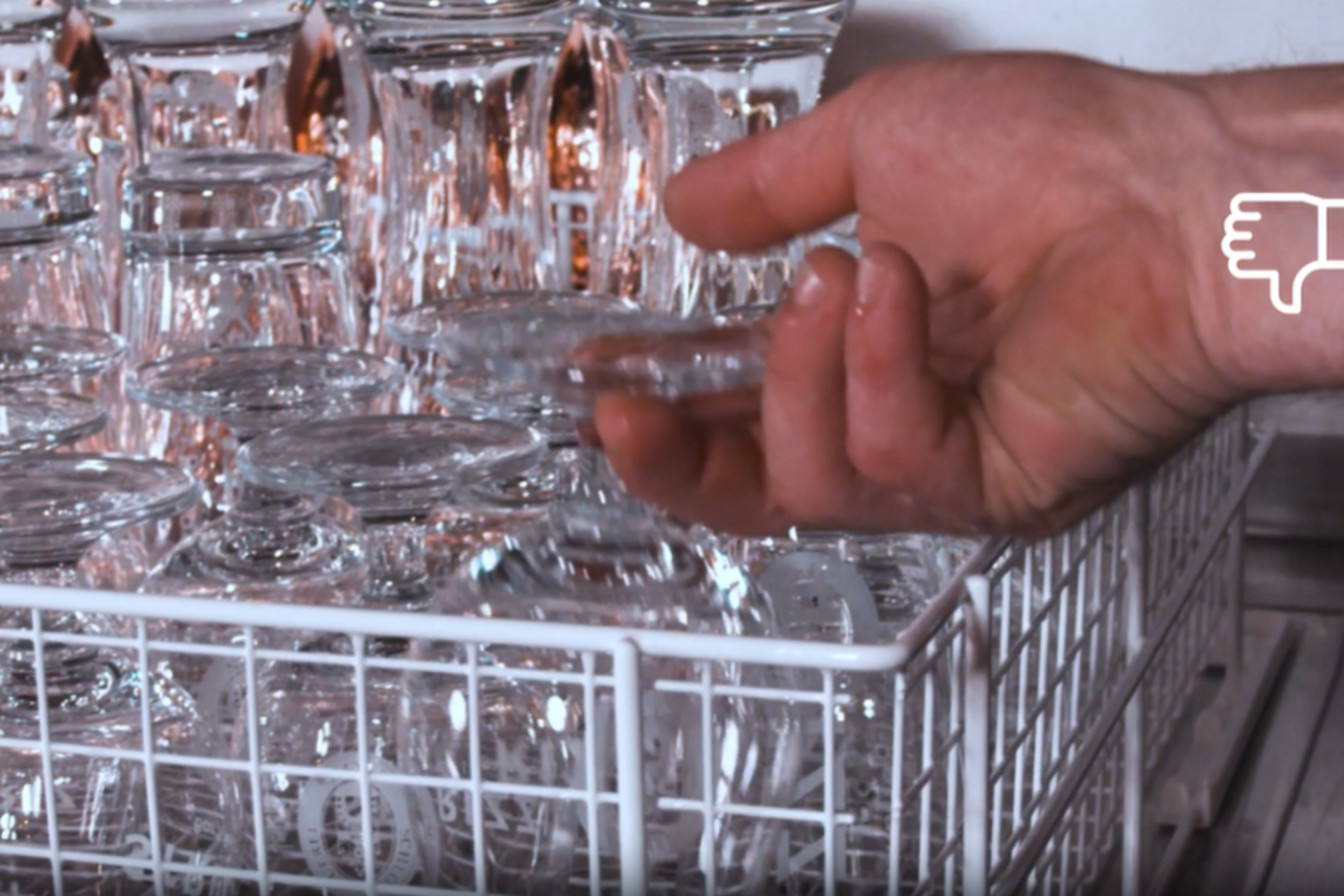 Borden te dicht op elkaar, glazen schuin of gestapeld zorgen er voor slechte reiniging en beschadiging.