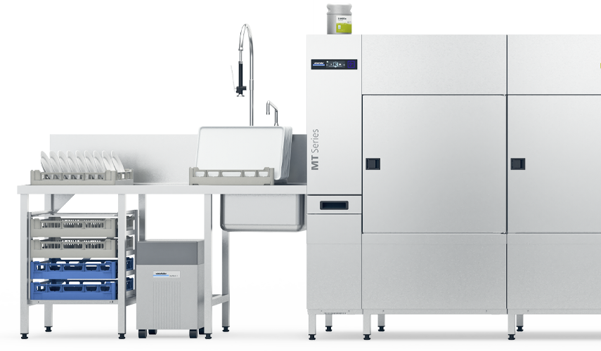 Clever spatial planning. Functional and energy-efficient technology. Economical operating processes and maximum hygiene safety. The demands placed on a professional commercial kitchen are high. The MTR series helps kitchen planners develop innovative operating concepts: with high-performance conveyor dishwashers that can be flexibly configured and perfectly matched to suit each customer's situation.