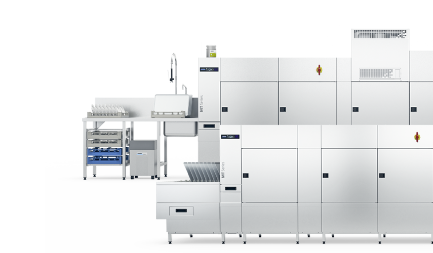 The MT Series warewashers are in a class of their own: In addition to providing the best washing performance, they also offer the maximum level of investment security. In doing so, they set a new standard for flight-type dishwashers.