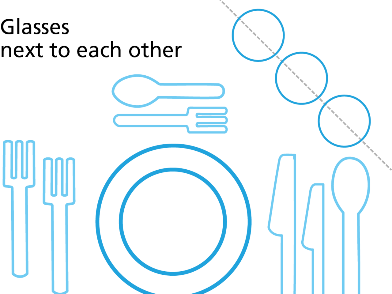 Every glass has its own place on a stylishly laid table. In practice, there are two common options for positioningred, white and water glasses.