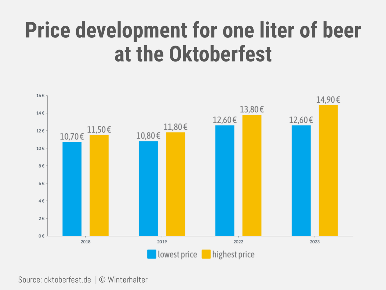 Every year there are two important questions asked in the run-up to the Munich Oktoberfest 2023. How much does a Maß of Wiesnbier cost? And, how clean are the beer glasses, beer mugs and steins really? The first question can be answered quickly: At Oktoberfest 2023, the price of a Maß of beer will be between €12.60 and €14.90. We will address the hygiene issue in more detail below.