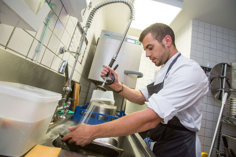 “All we have to do is rinse off any heavy dirt or stains then put the glasses into the Winterhalter. It’s fast and gives really good results.” José Pizarro.
