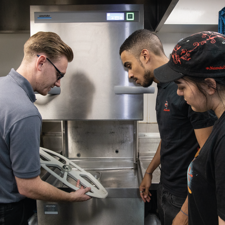 At Winterhalter, we are proud of the quality of our warewashers and aim to guarantee perfect wash results for our customers day in, day out. That’s why we and our partners are here to help, ensuring first-class service before and after your purchase. With well-trained technicians, preventative maintenance packages and a proactive approach to service.